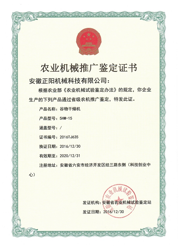農(nóng)業(yè)機(jī)械推廣鑒定證書