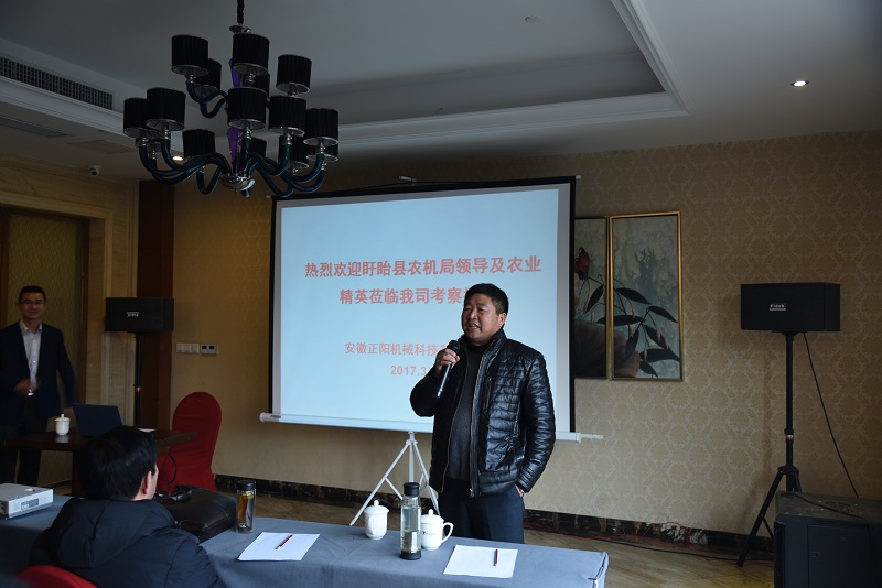 2017年3月6日下午,江蘇盱眙縣農(nóng)機局領(lǐng)導帶領(lǐng)當?shù)剞r(nóng)業(yè)精英朋友來到安徽正陽機械科技有限公司考察指導。