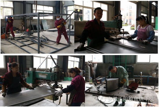 工人們正在車間內加緊生產(chǎn)糧食烘干機,現(xiàn)場機器轟鳴,焊花飛濺。